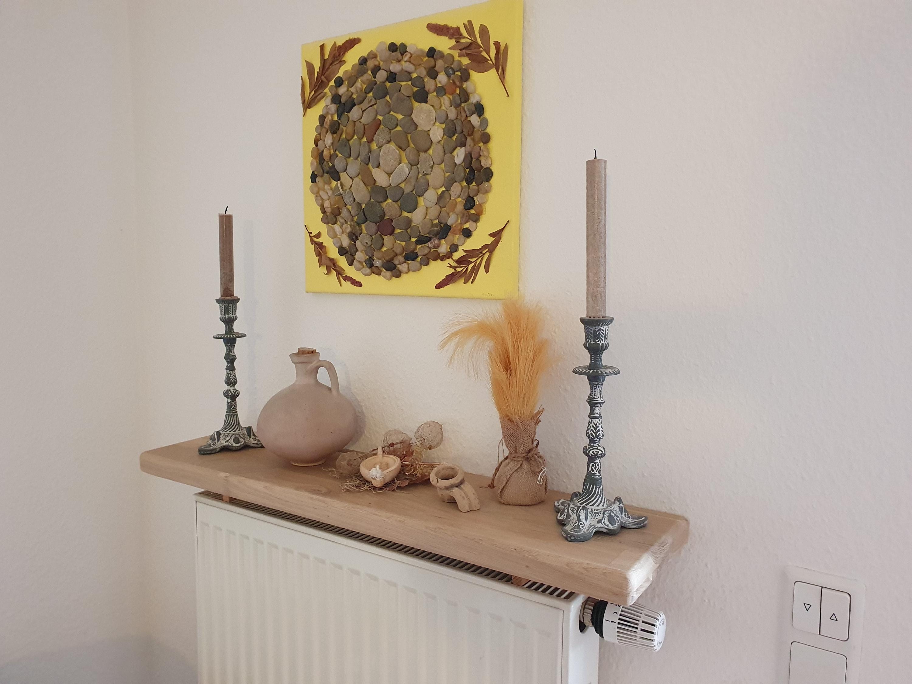 Das Brett ist wunderschön, nur leider funktioniert es nicht bei einem Rippenheizkörper. Es liegt dann direkt auf der Heizung auf. Ich hatte das vor dem Kauf extra erfragt und der Verkäufer teilte mit,das es bei jedem Heizkörper funktioniert. Ich meldete ihm den Fall und er wollte mir andere Halterungen schicken. Das ist leider bis heute nicht passiert und nun wird auch nicht mehr auf Nachrichten geantwortet. Sehr schade,meine erste unschöne Etsy Erfahrung.